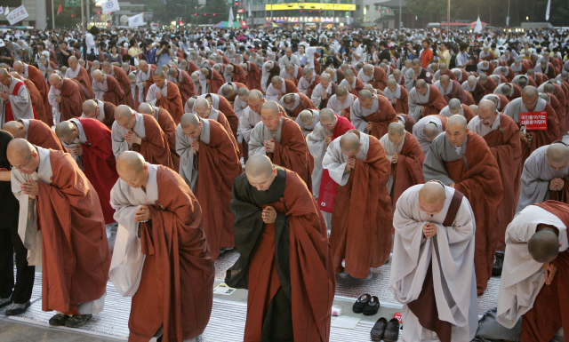 2008³â ºÒ±³°è°¡ ¼¿ï±¤Àå¿¡¼ ¿¬ ½Ã±¹¹ýȸ¿¡¼ ÇÕÀåÇÏ¸ç °í°³¸¦ ¼÷ÀÌ´Â ½Â·Áµé. ±è°æÈ£ ±âÀÚ jijae@hani.co