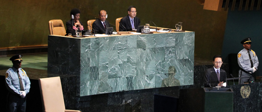 ÀÌ ´ëÅë·ÉÀº ¼¼°è ¸ðµç ±¹°¡°¡ ÇÔ²² ¹ßÀüÇÏ´Â ¡®°ø»ý¹ßÀü¡¯À» ±¹Á¦»çȸ Çù·ÂÀÇ ºñÀüÀ¸·Î Á¦½ÃÇϰí, G20 °³¹ß ÄÁ¼¾¼½º ÀÌÇà ¹× À¯¿£»õõ³â°³¹ß¸ñÇ¥(MDGs) ´Þ¼ºÀ» À§ÇØ ¿ì¸®³ª¶ó°¡ Àû±ØÀûÀ¸·Î ³ë·ÂÇØ ³ª°¥ °ÍÀÓÀ» ¹àÇû´Ù.