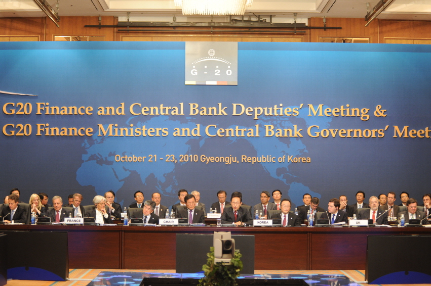 À̸í¹Ú ´ëÅë·ÉÀº 10¿ù 22ÀÏ °æÁÖ¿¡¼ °³Ãֵǰí ÀÖ´Â G20 À繫Àå°ü / Áß¾ÓÀºÇàÃÑÀç ȸÀÇ¿¡ Âü¼®ÇÏ¿© G20 °¢±¹ À繫Àå°ü ¹× Áß¾ÓÀºÇàÃÑÀçµéÀ» °Ý·ÁÇϰí ȯ¿µÀλ縦 Çß´Ù°í ¹àÇû´Ù.