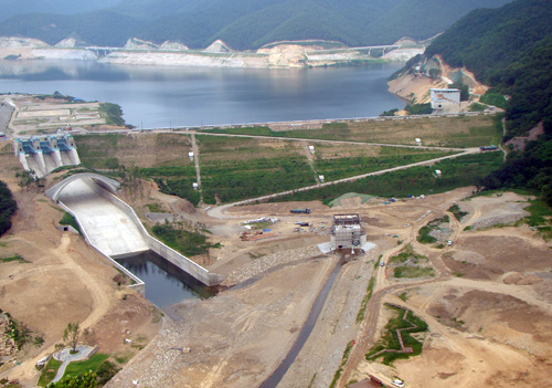 ±ºÀ§´Ù¸ñÀû´ï °Ç¼³»ç¾÷Àº °æºÏ ÁߺÎÁö¿ª(±ºÀ§, ÀǼº, Ä¥°î)ÀÇ ¿ë¼ö°ø±Þ°ú ³«µ¿°­ ÇÏ·ùÀÇ È«¼öÇÇÇØ Àú°¨, ģȯ°æ ¿¡³ÊÁö »ý»êÀ» À§ÇØ Áö³­ 2004³â Âø°øÇÏ¿´À¸¸ç, ³ôÀÌ 45m, ±æÀÌ 390mÀÇ Ä£È¯°æ ³ì»ö´ïÀÌ´Ù.
