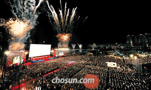 Á¦15ȸ ºÎ»ê±¹Á¦¿µÈÁ¦ °³¸·½ÄÀÌ 7ÀÏ ¹ã ºÎ»ê ÇØ¿î´ë ¼ö¿µ¸¸¿äÆ®°æ±âÀå ¾ß¿Ü»ó¿µ°ü¿¡¼ ¿·È´Ù. ¼ö¸¹Àº ¿µÈÆÒµéÀÌ ¿µÈÃàÁ¦ÀÇ ½ÃÀÛÀ» ¾Ë¸®´Â ÃàÆ÷¿Í ºÒ²É³îÀ̸¦ ÁöÄѺ¸¸ç ÃàÁ¦ÀÇ ¹ãÀ» ¸¸³£Çϰí ÀÖ´Ù./ Á¶¼±ÀϺ¸