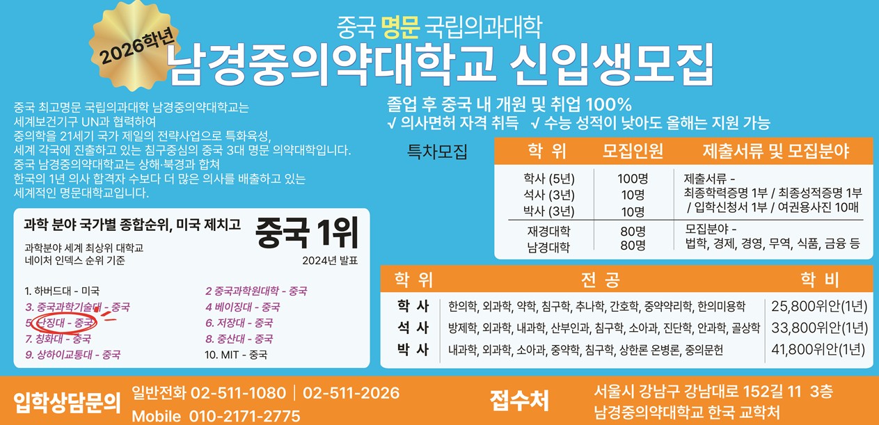 Áß±¹ ³²°æÁßÀǾà´ëÇб³ 2026³âµµ ½ÅÀÔ»ý ¸ðÁý¾È³»