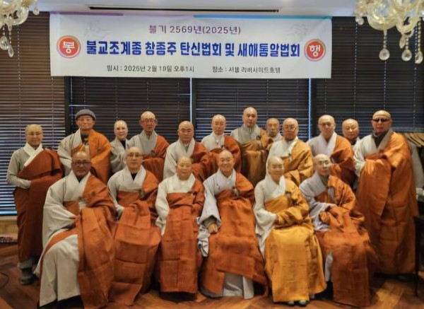 ºÒ±â 2569³âÀ» ¸Â¾Æ (À²Á¾)ºÒ±³ Á¶°èÁ¾ÀÌ ÁÖÃÖÇÑ ¡®Ã¢Á¾ÁÖ Åº½Å¹ýȸ ¹× »õÇØ Åë¾Ë¹ýȸ¡¯°¡ 2¿ù 19ÀÏ ¼¿ï °³²±¸ ¸®¹ö»çÀ̵åÈ£ÅÚ¿¡¼ ¾ö¼÷ÇÏ°íµµ °æ°ÇÇÑ ºÐÀ§±â ¼Ó¿¡¼ ÁøÇàµÇ¾ú´Ù. À̹ø ¹ýȸ´Â (À²Á¾)ºÒ±³ Á¶°èÁ¾ ½Åµµµé°ú »çºÎ´ëÁßÀÌ ÇÑÀÚ¸®¿¡ ¸ð¿© Á¾´ÜÀÇ Ã¢Á¾ÁÖ¸¦ ±â¸®´Â µ¿½Ã¿¡ »õÇØ¸¦ ¸Â¾Æ ¼öÇàÀÇ Àǹ̸¦ µÇ»õ±â´Â ÀÚ¸®·Î ¸¶·ÃµÇ¾ú´Ù.
