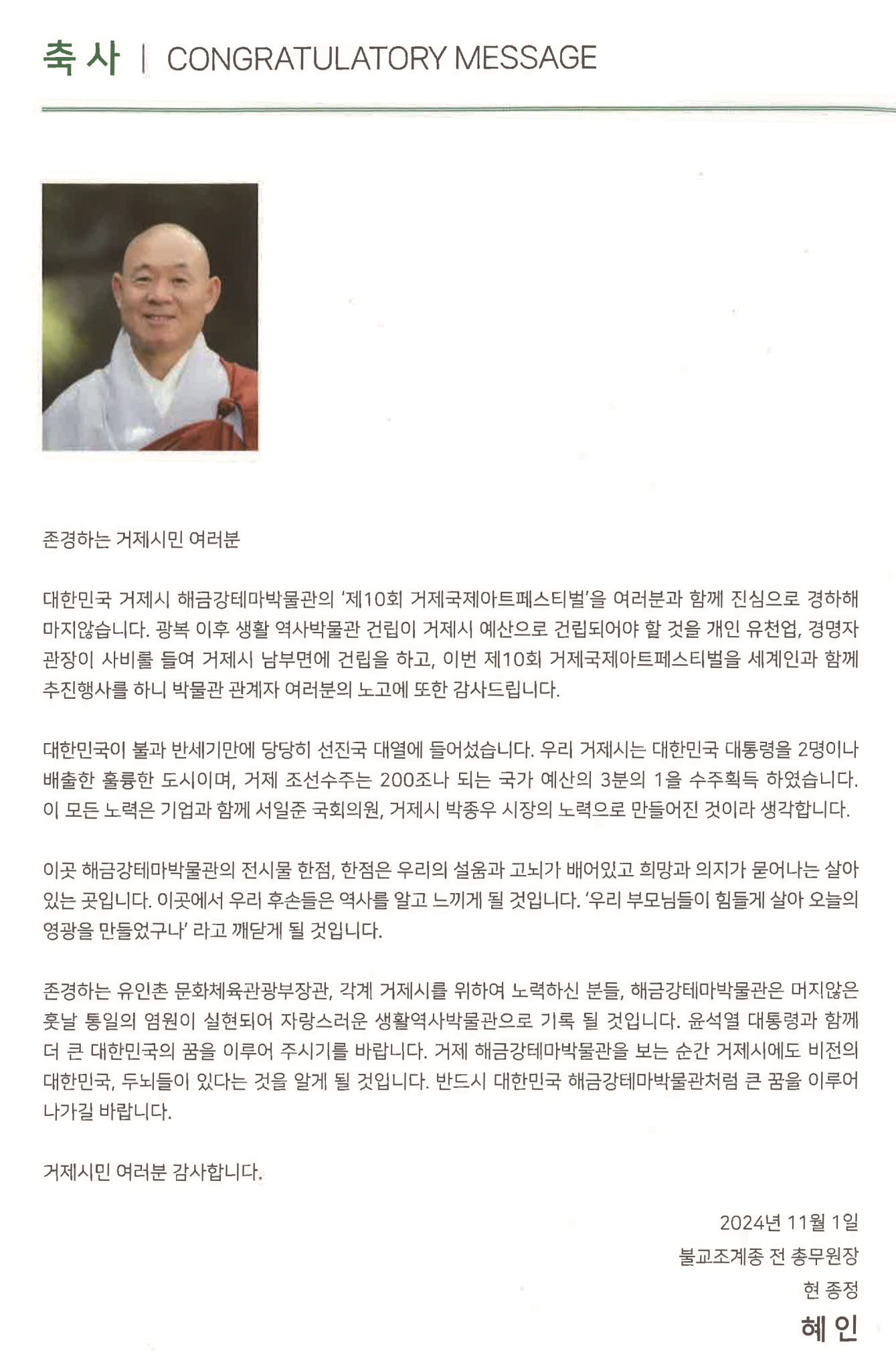 (À²Á¾)ºÒ±³Á¶°èÁ¾ Á¾Á¤ ÇýÀνº´ÔÀº Ãà»ç¸¦ ÅëÇØ Á¦ 10ȸ °ÅÁ¦±¹Á¦¾ÆÆ®Æä½ºÆ¼¹ú °øÁ¸ÀÇ ¾ð¾î ¿¹¼úÀü °³ÃÖ¸¦ ÃàÇÏÇß´Ù.