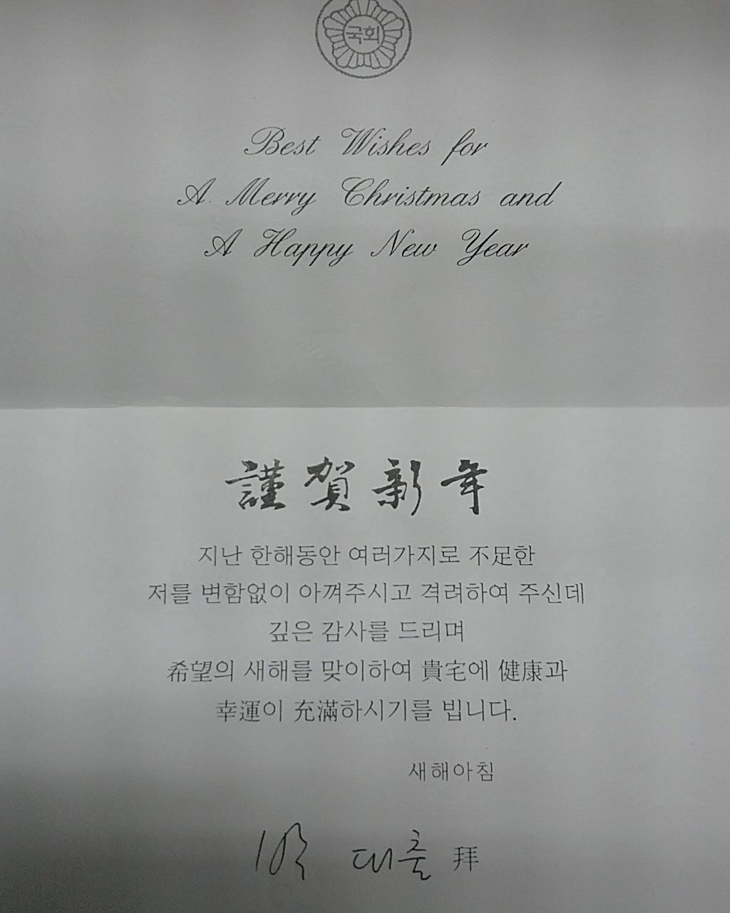 ´ëÇѹα¹ ±¹È¸ÀÇ¿ø ¹Ú´ëÃâ , Ãѹ«¿øÀå ÇýÀÎ Å«½º´Ô²² ¿¬ÇÏÀå Àü´Þ.