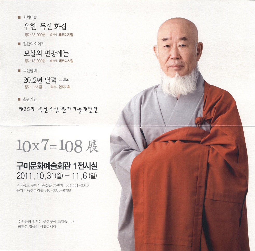 À²Á¾)ºÒ±³Á¶°èÁ¾»ïÈ­ºÒ±³ °æºÏ±¸¹Ì µæ»ê»ç µæ»ê½º´Ô Á¦25ȸ ȯġ¹Ì¼ú °³ÀÎÀüÀÌ 2011³â10¿ù31ÀÏ~11¿ù 6ÀϱîÁö ±¸¹Ì¹®È­¿¹¼úȸ°ü1Àü½Ã½Ç¿¡¼­ °³ÀÎÀüÀ» ±âÁö¿À´Ï Á¾´Ü½º´Ôµé²²¼­´Â Àá½Ã ½Ã°£À»³»¼Å¼­ µæ»ê½º´Ô°³ÀÎÀü¿¡ µ¿ÂüÇØÁֽñ⸦ ¹Ù¶ø´Ï´Ù.
